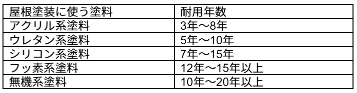 屋根塗装に使う塗料ごとの耐用年数は次のようになっています。